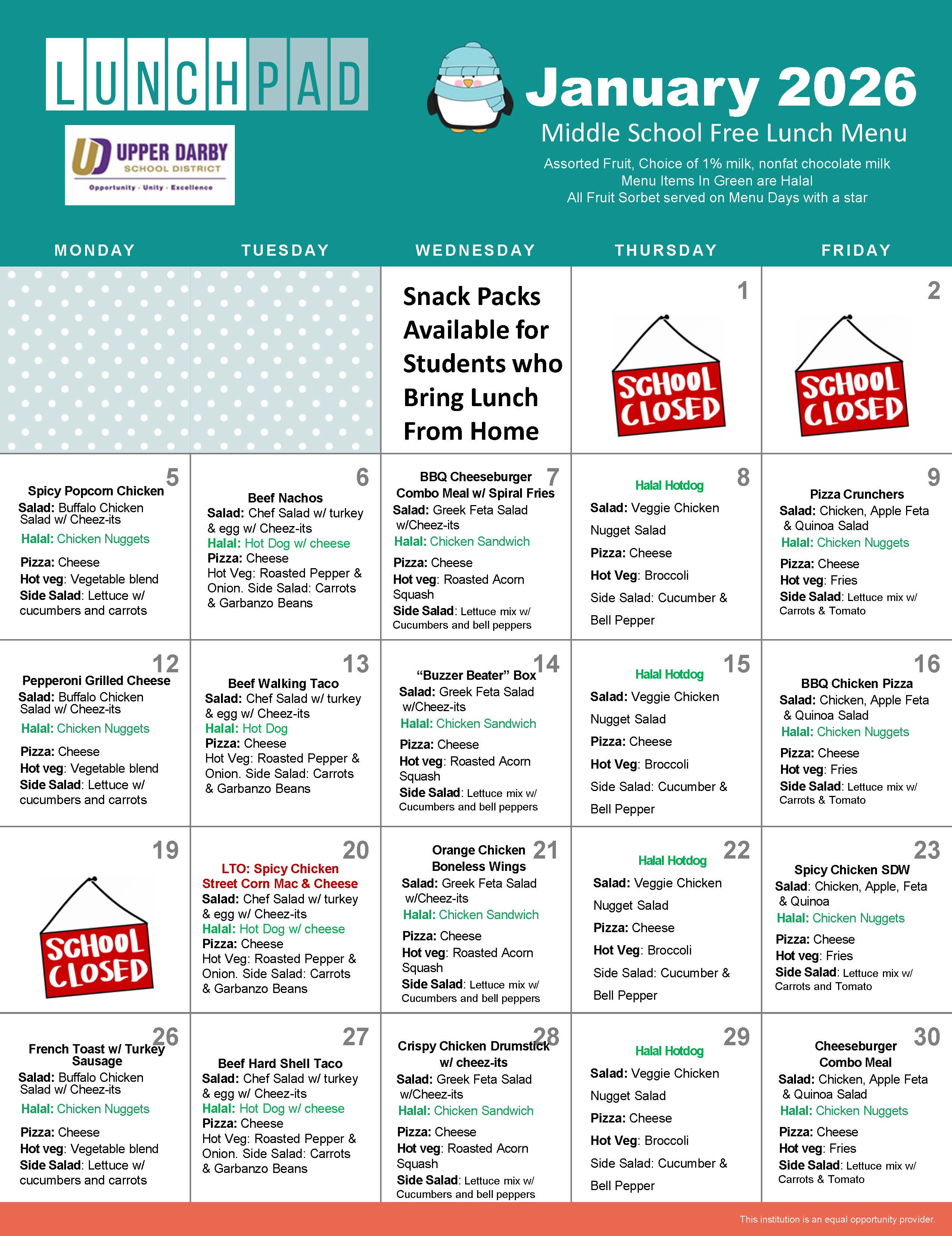 Want to print this month's menus for home? Access the printable menus via the following links: