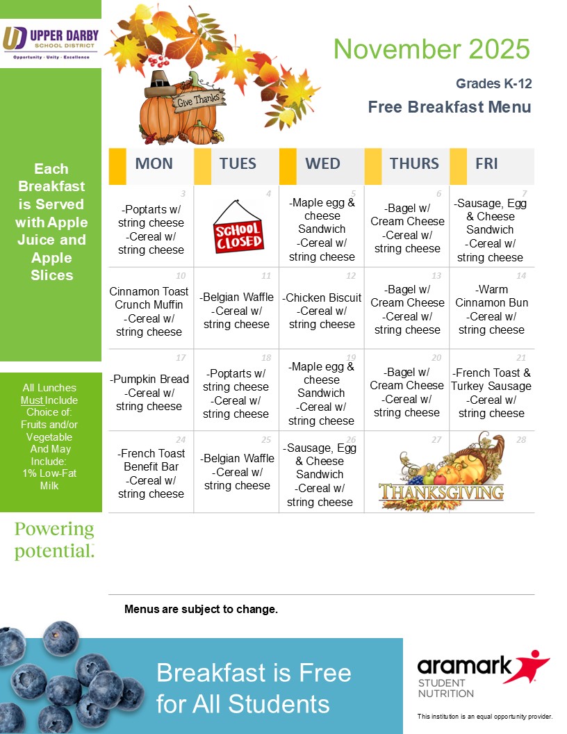 Want to print this month's menus for home? Access the printable menus via the following links: