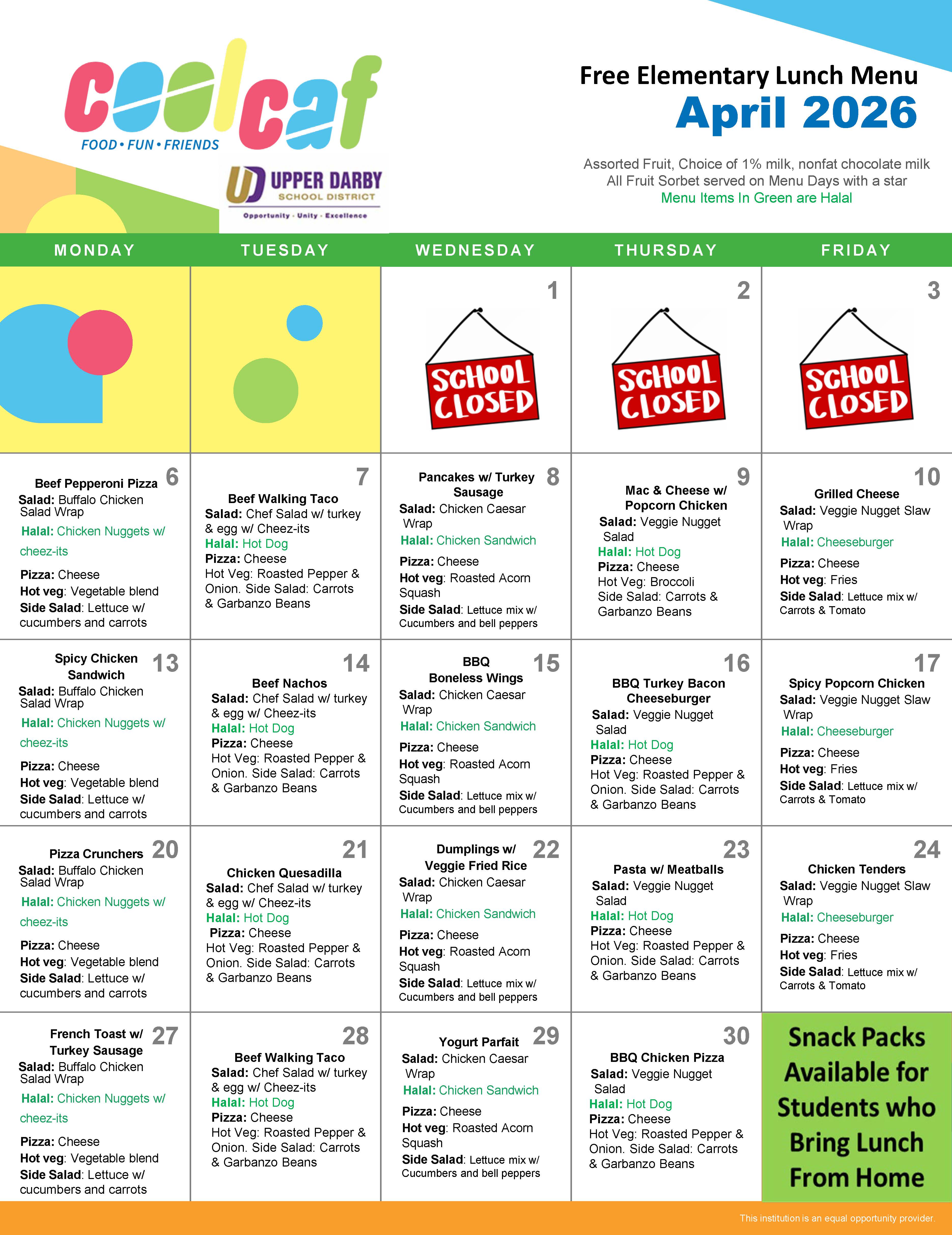 Want to print this month's menus for home? Access the printable menus via the following links: