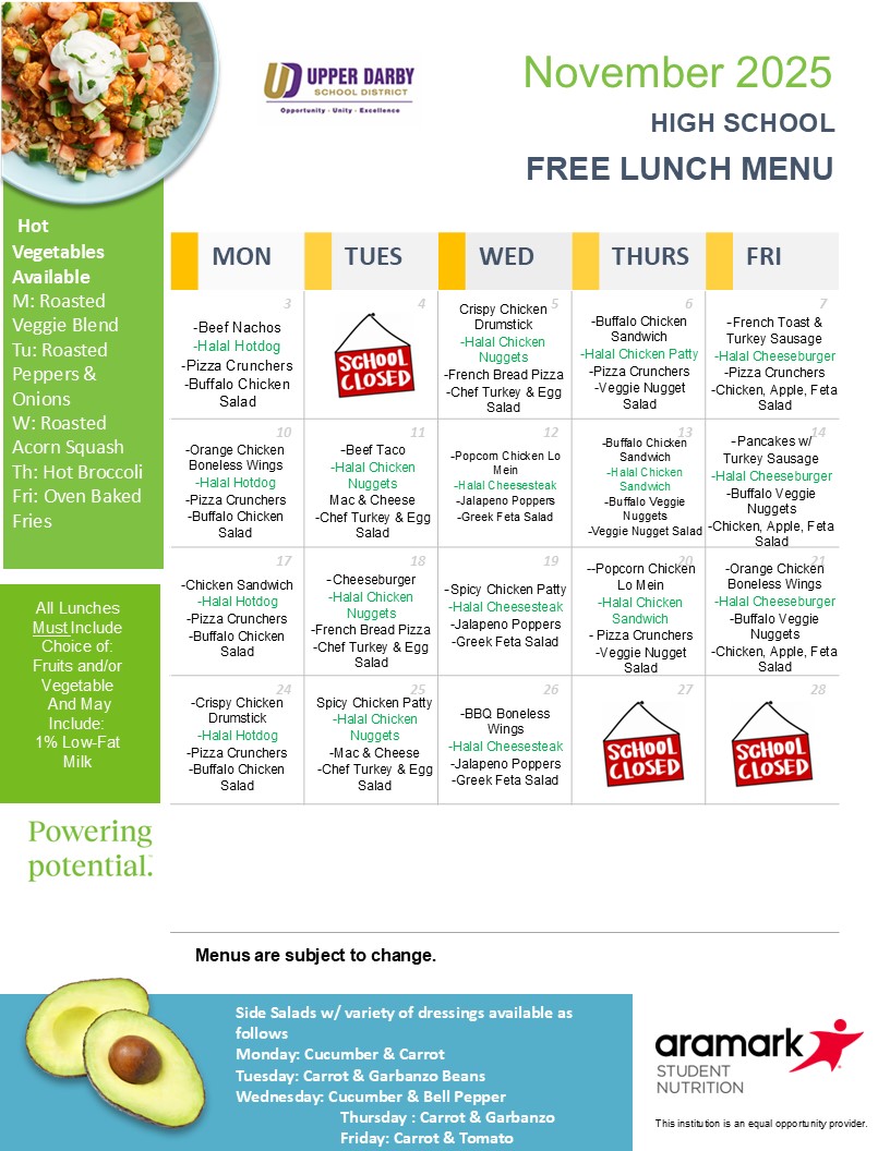 Want to print this month's menus for home? Access the printable menus via the following links: