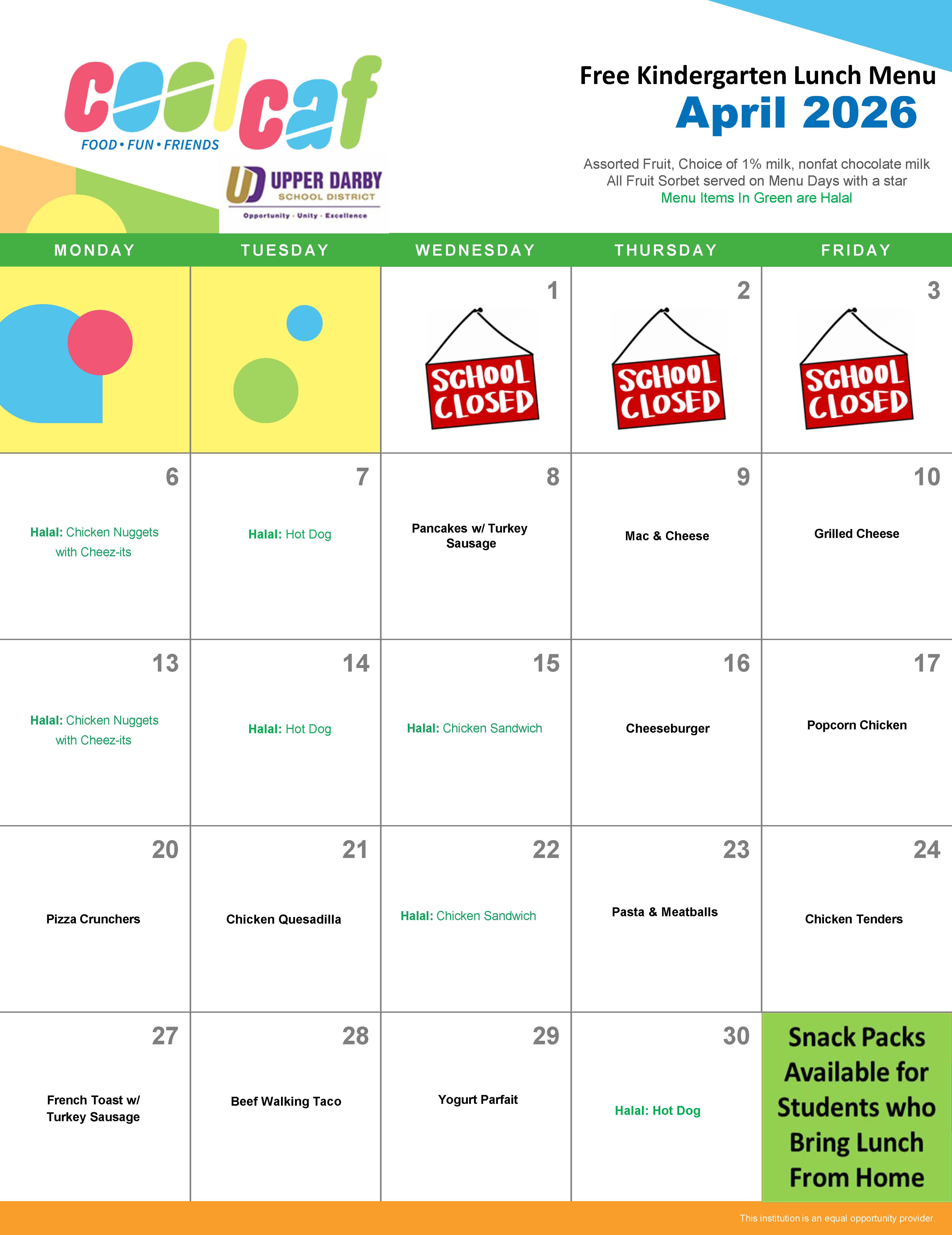 Want to print this month's menus for home? Access the printable menus via the following links: